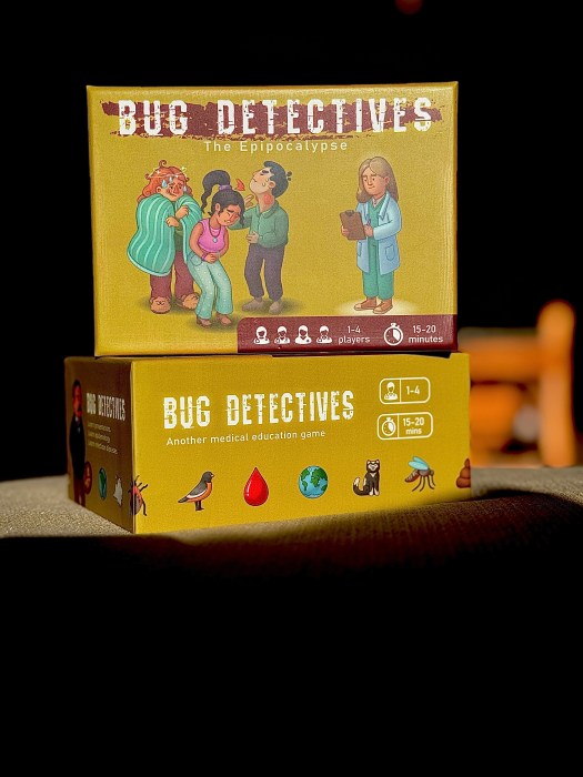 Bug Detectives: The Epipocalypse is a medical educational card game. Learn the basic clinical presentation, geographic distribution, vectors, and reservoirs of 100+ infectious diseases worldwide using an endlessly replayable game that tests your knowledge beyond trivia-style questions. Play alone or with friends, with increasing levels of difficulty as you master the game.