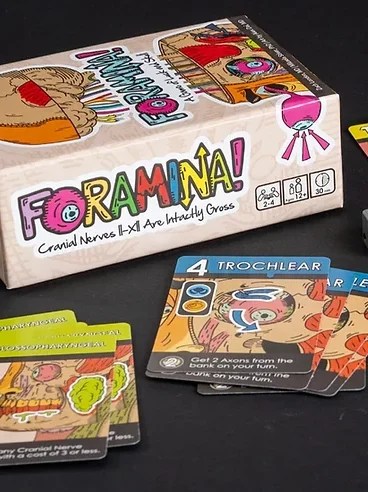A game of luck and skull, roll dice and collect cards to learn about the brain, cranial nerves, and all the holes (foramina) they pass through. Published by NeurdGames.